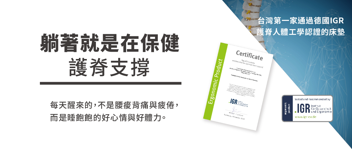 全台唯一德國IGR脊椎健康人體工學安全認證