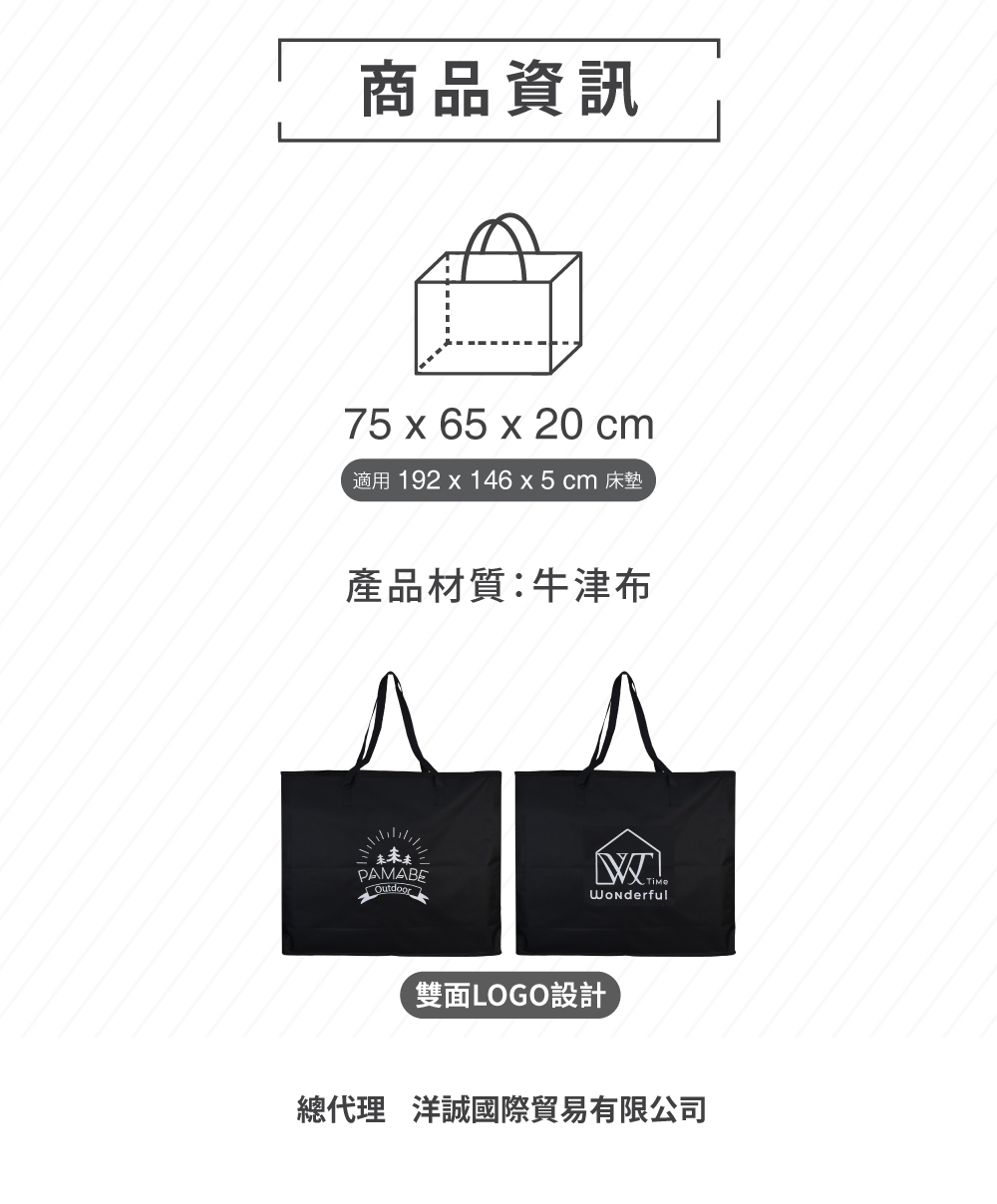 請注意:一個收納袋建議裝一張床墊(二折三塊內芯),若您購買的車用床墊為左右各一條,需使用兩個收納袋。
