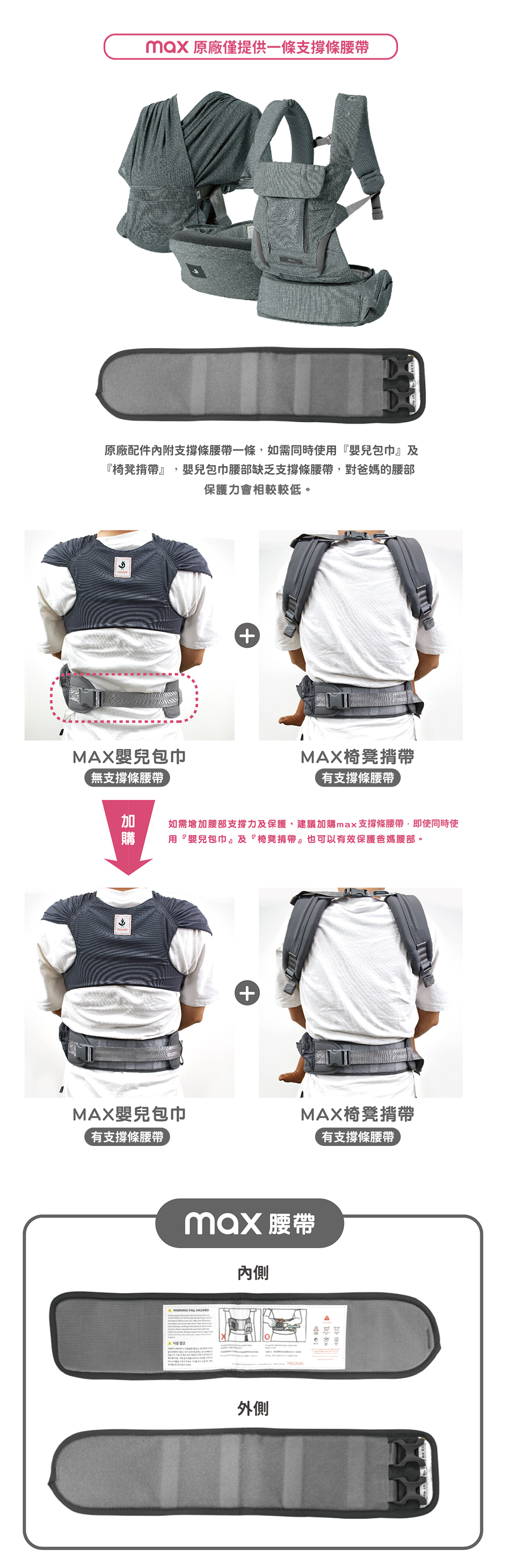 加購此支撐條腰帶,可使max揹巾使用上更加輕鬆、省力!